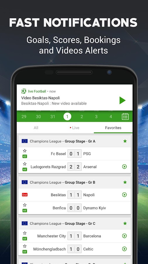 "Live Football" is a free application. Download our football Livescore service right now for the complete football experience!