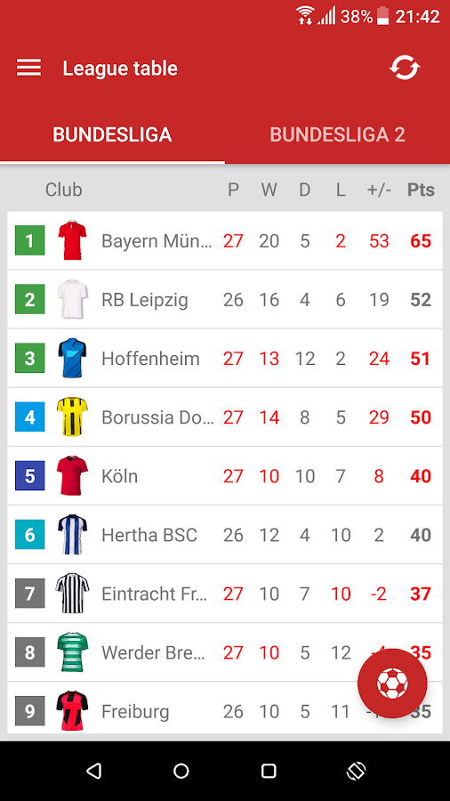 Live Scores for Bundesliga is the app that will allow you to follow the