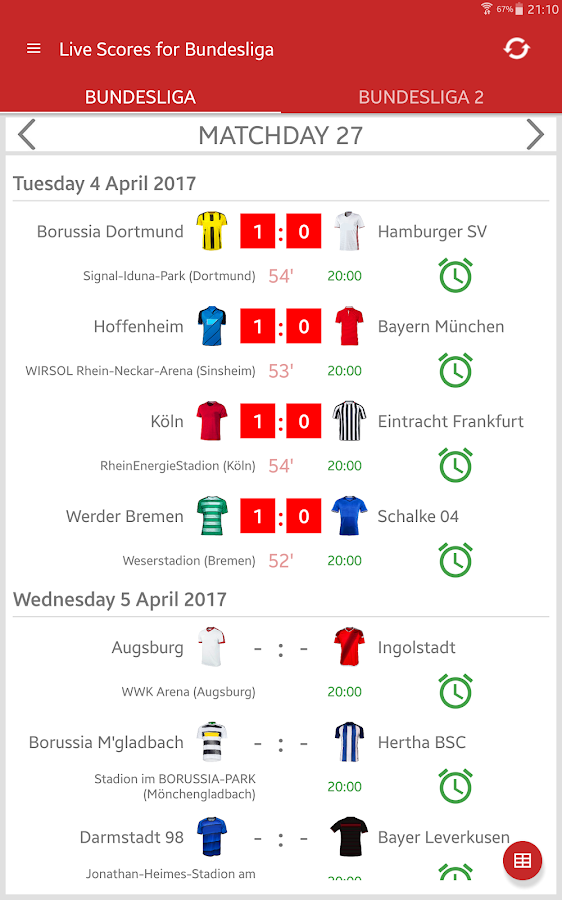 Live Scores for Bundesliga 2017/2018